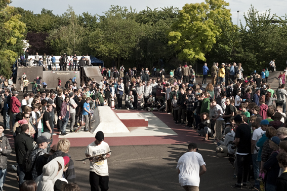 Nachdem zu Anfang die Miniramp erst mal platt gemacht worden war, pilgerte die Crowd irgendwann hinter Chris Cole her und versammelte sich am neu gebauten DC Curb um ein dort paar Tech Spielereien vorgeführt zu bekommen.