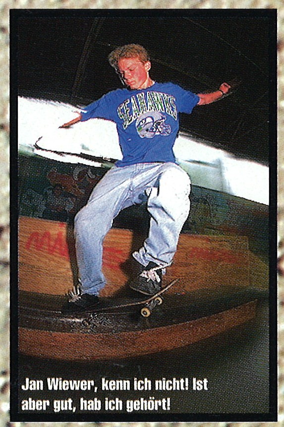 Jan Kliewer: Es gibt eine Sequenz von einem langen Ollie über eine Laderampe in Köln, die mag ich sehr. Und eine weitere Sequenz von einem switch frontside Crooks, ebenfalls in Köln. Aber keine Ahnung, in welchen Ausgaben die gewesen sind. An Lieblings-Einzelbilder erinnere ich mich nicht, was Schade ist – würde ich gerne. Aber die Tage, an denen ich mit Helge unterwegs gewesen bin, waren geprägt von Sequenzen. Video war noch nicht so angepfiffen und die meisten Dinge, die wir geschossen haben, waren für die Zeit eher technisch und haben als Sequenz besser funktioniert. Rückblickend wünsche ich mir, wir hätten mehr Stills geschossen.