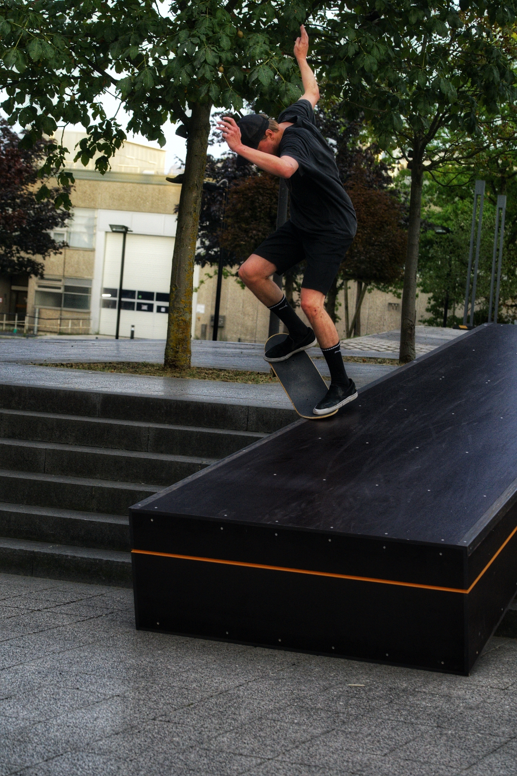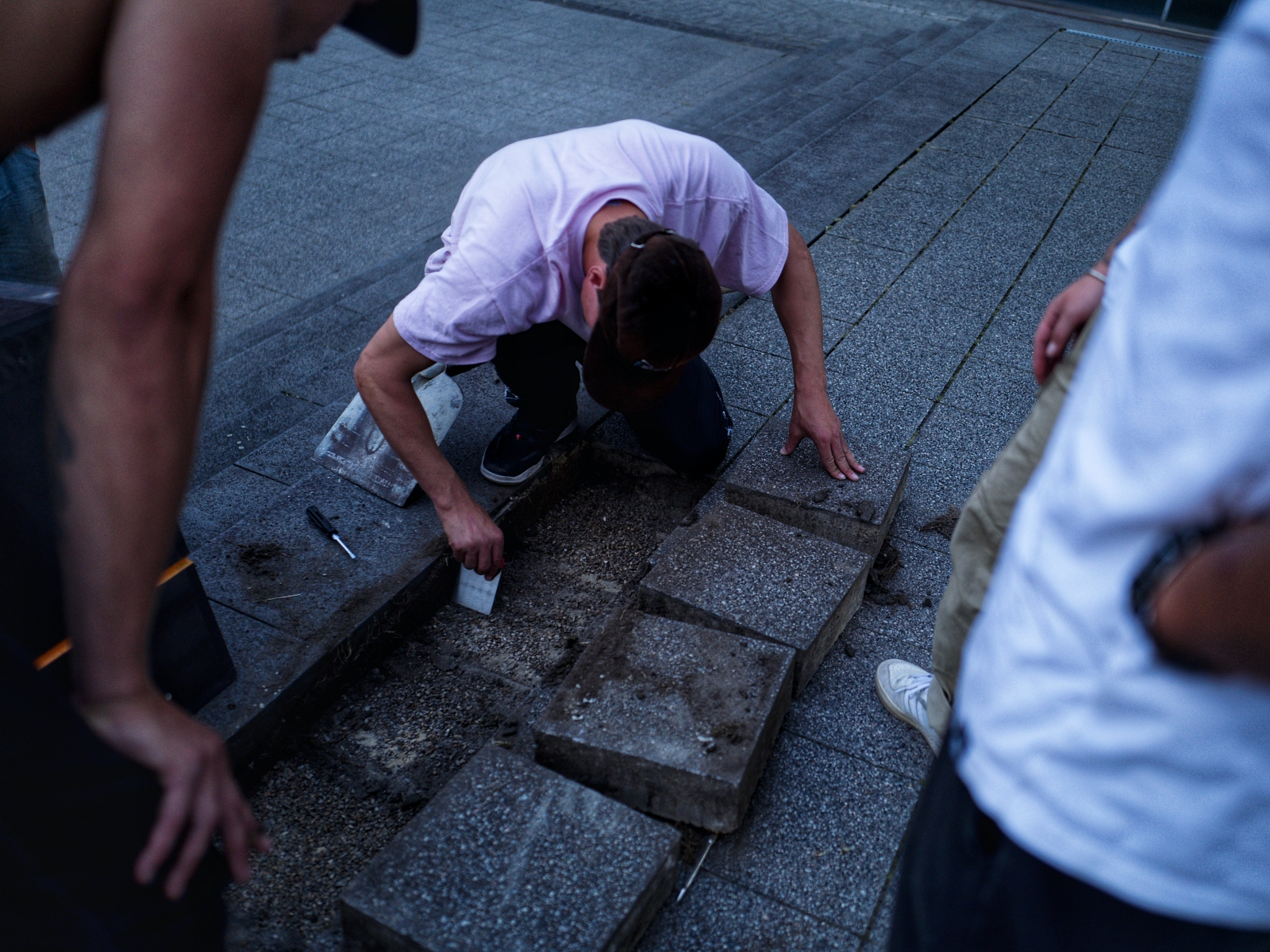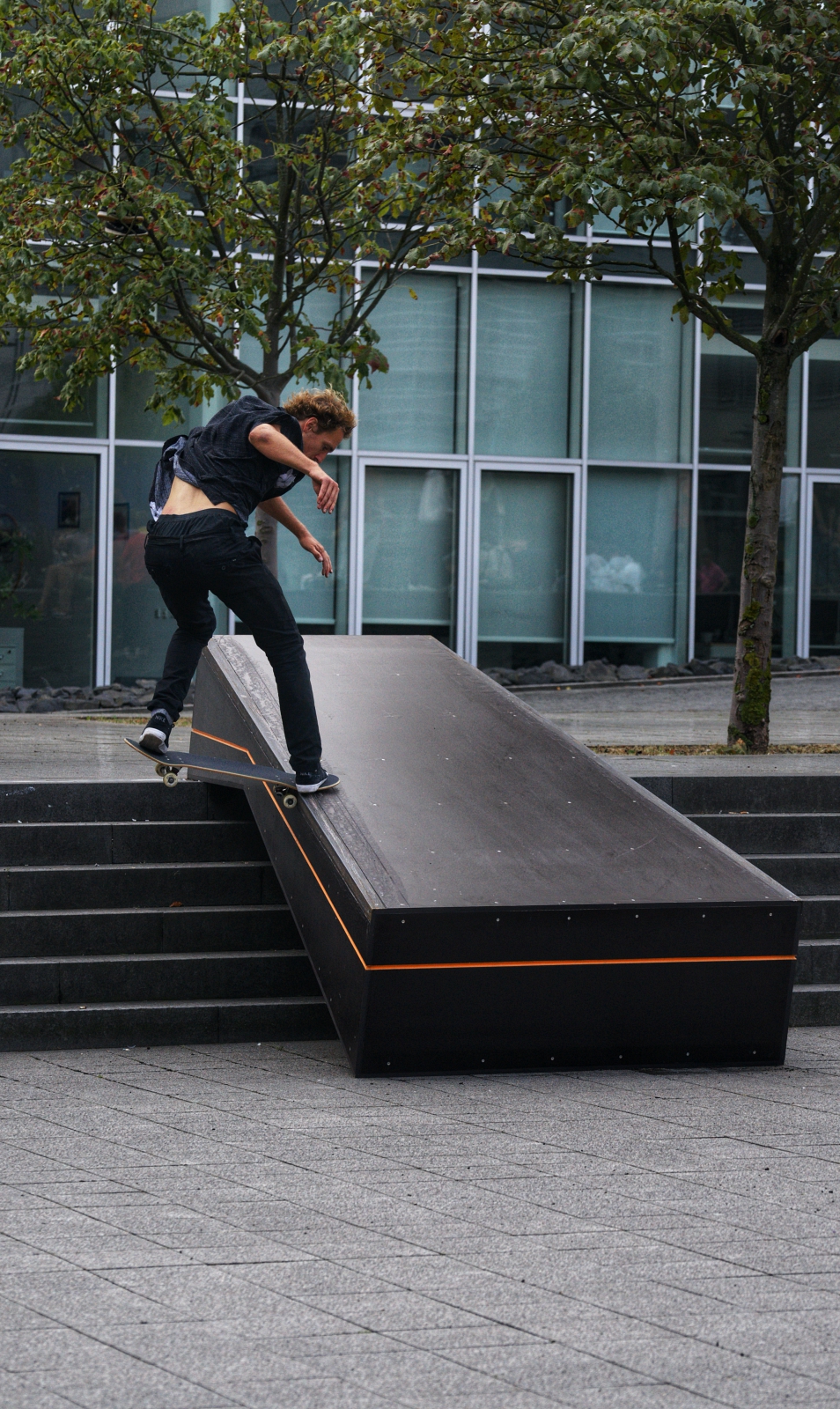 Im Zuge des 20-jährigen Jubiläums des Plan-B Funsport Shops in Bochum haben sich die Shop Crew rund um Jochen und Denis für diesen Spot etwas besonders überlegt. Statt eines klassischen Contests war es ihr Ziel, den berühmten Spot zu erweitern. Mit der Hilfe von Dorothee Bielfeld wurde so ein einzigartiges Obstacle geschaffen, das die Grenzen zwischen Skatespot und Kunstobjekt verschwimmen lässt. Dorothee hat bereits den Entwurf der Bodenflügel am Rathaus in Herten mit dem Ziel unterstützt, einen Skatespot für die dortige Community zu schaffen.