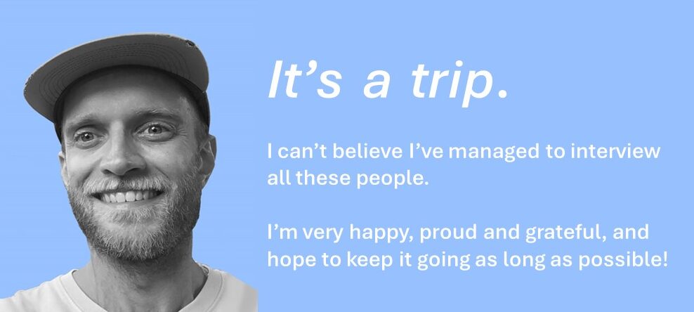 Definitely not! It’s a trip. I can’t believe I’ve managed to interview all of these people. I’m very happy, proud and grateful, and hope to keep it going as long as possible!