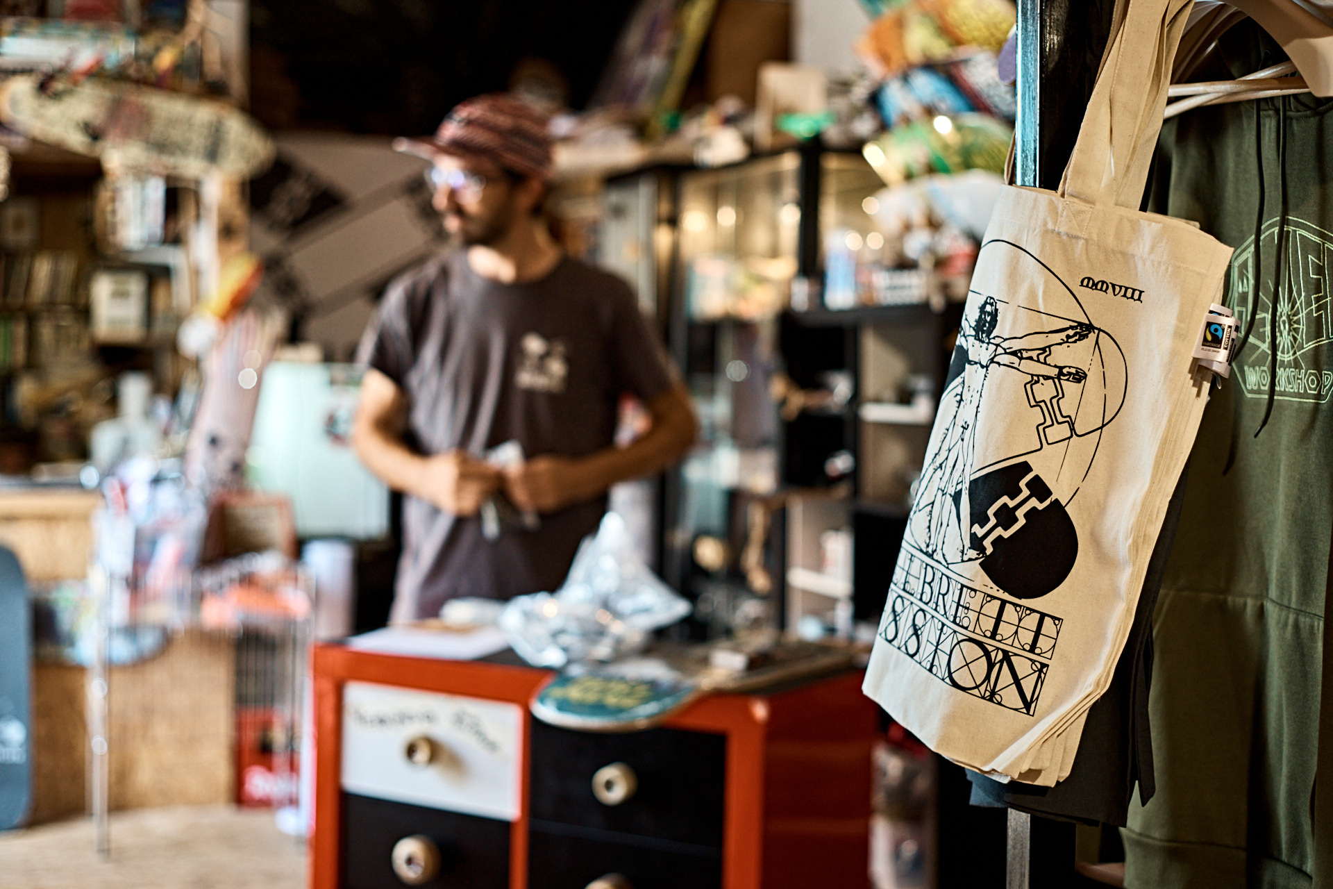 Auf den Namen kam ich relativ schnell beim Brainstorming: angelehnt an die Bahnhofsmission und inspiriert durch meine damalige Domain www.rollbrettfahren.de, auf der ich viel gebloggt hatte. Das hat einfach sofort gepasst. Ein Skateshop ist für mich ein Ort zum Abhängen ohne Konsumzwang – ein Safe Space, wo man auch mal ein gebrauchtes Deck oder ein Kugellager für umme abstauben kann, wenn man gerade knapp ist.