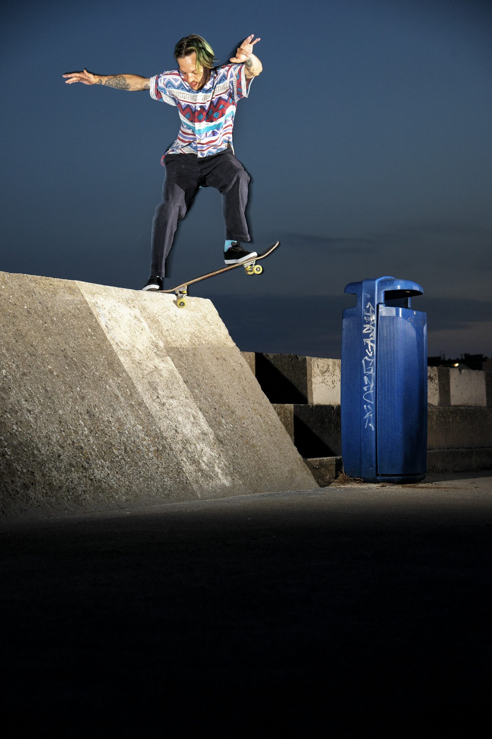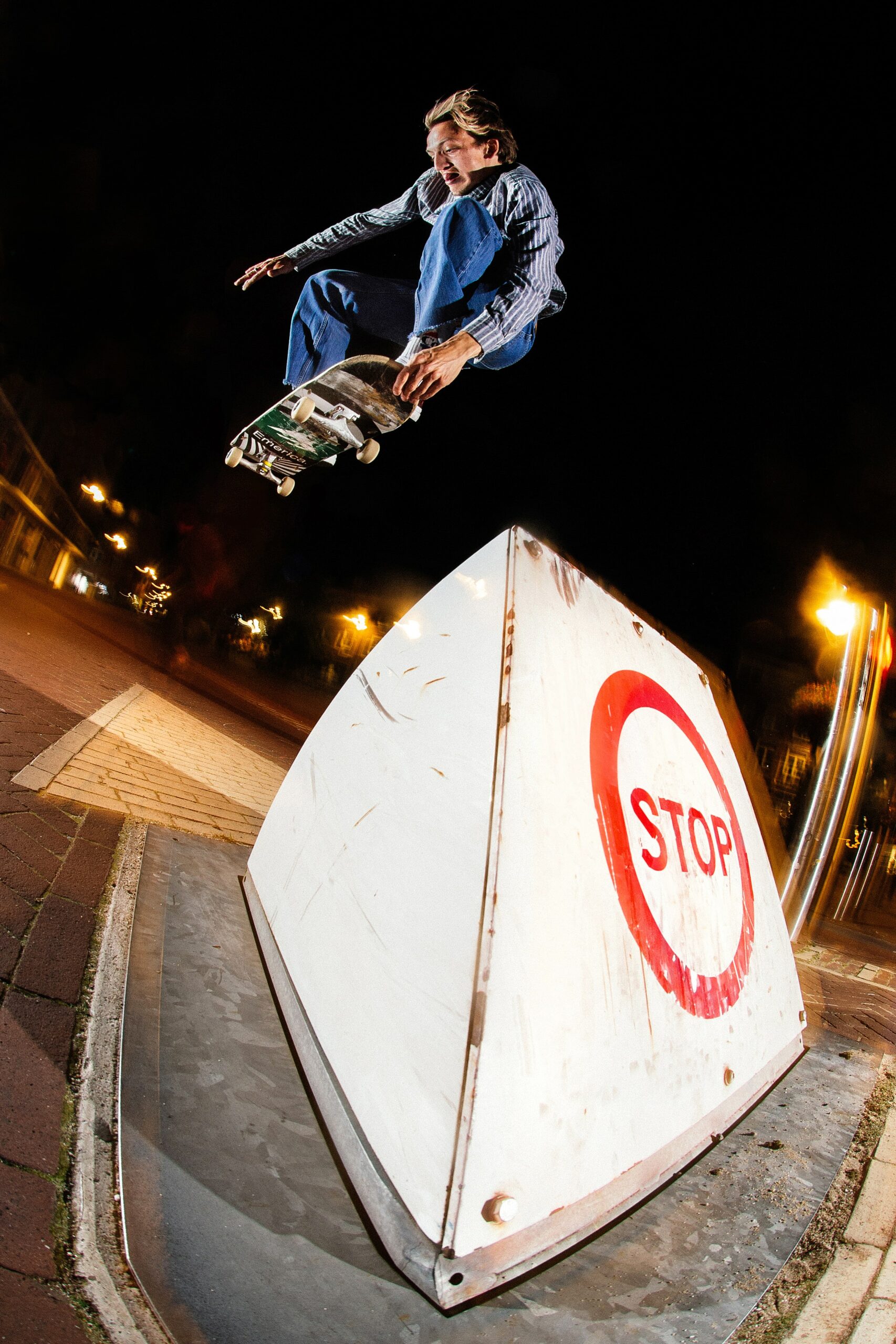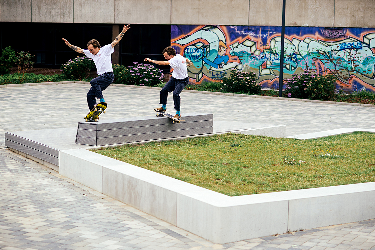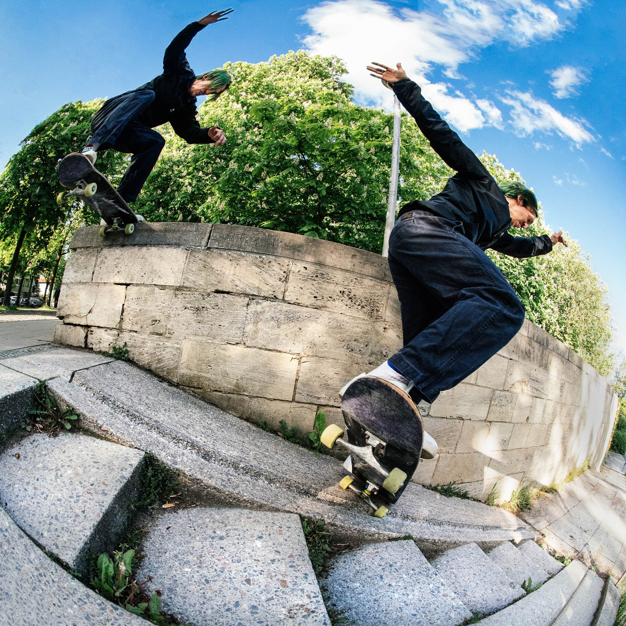 André kenne ich schon ziemlich lange. Um ehrlich zu sein, weiß ich gar nicht so genau, wie lange überhaupt. Auf jeden Fall war er damals noch ein kleiner Junge, der mir dadurch auffiel, dass er durch die Skatehalle Walhalla flowte wie sonst kaum einer. Er war schon immer jemand, der anders war. Sein Style, seine Tricks, sein Aussehen. Alles war irgendwie besonders. Auf eine Art und Weise, die man gar nicht so richtig in Worte kleiden kann. André bringt mich und wahrscheinlich auch viele andere durch seine Art zu skaten immer wieder zum Staunen und Grinsen. Es macht einfach Spaß, ihm zuzuschau en, weil so viel Kreativität in ihm steckt. Man weiß nie, was als Nächstes kommt.