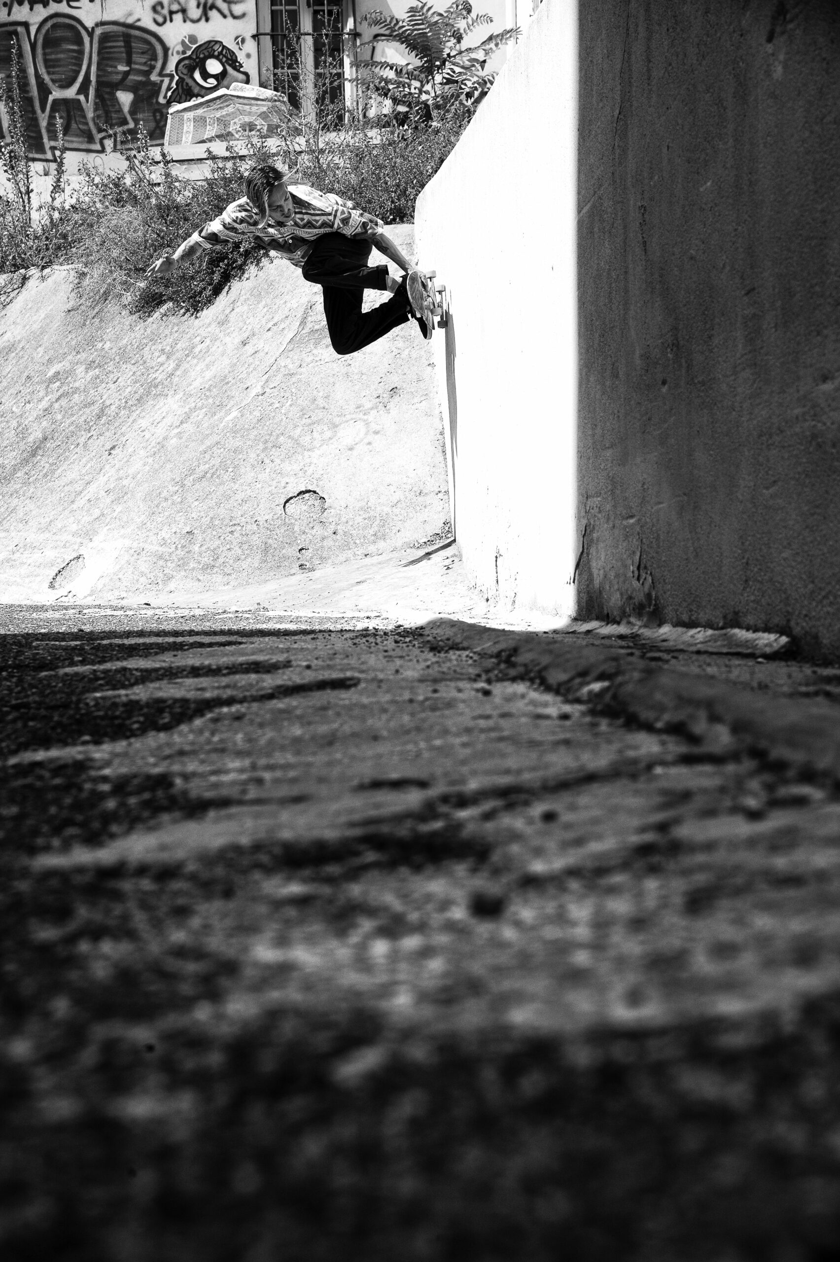 Oft saßen wir mittwochs in der Halle und haben uns die Gerlich Show reingezogen. Da war es meist schon spät in der Nacht. Einige waren bereits damit beschäftigt, beim Gerade aus Gehen nicht ins Wanken zu geraten. Das war sein Moment, um die Streetfläche alleine auseinanderzunehmen. Wir saßen dann auf der Tribüne und schauten ihm zu. Er hinterließ dabei meist offene Münder und wunde Hände vom Klatschen, weil er auf einmal, wie aus dem Nichts, Tricks auspackte, die man vorher noch nie von ihm gesehen hatte.