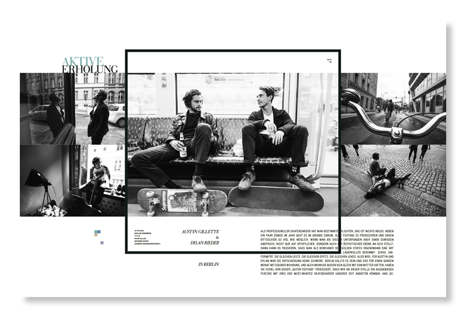 Felix Lensing trägt gerne Schwarz-Weiß, Dylan Rieder und Austyn Gillette kommen in Schwarz-Weiß, die Galerie ist Schwarz-Weiß und sogar die Products zeigen sich in Schwarz. Böse Zungen könnten deshalb behaupten, die neue Ausgabe käme farblos daher, aber die bereits genannten Namen dürften reichen, um das zu wiederlegen. Dazu gibt es noch eine Adidas Tour, Alex Schultz im Portrait und vieles mehr. Da wird es dann doch noch sommerlich bunt.