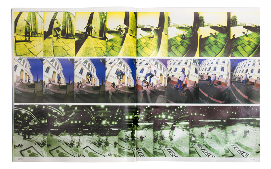 Also da waren zum einen Timo Hyppönen (ex Pro Snowboarder und Fotograf), Aki Kärjä (ein weiterer finnischer Skater, der schon mal in einem 411 Video zu sehen war) und dieser französische Rasta Typ Kevin B-seven. Kevin ist ein riesengroßer Psycho. Als wir in Mungia samt repariertem Bus waren (in der Nähe von Bilbao, Spanien) haben wir ihn auf einer großen Party verloren. Er war einfach weg und wir haben Kevin zwei Tage lang nicht mehr gesehen. Als unsere Truppe dann schließlich die Stadt verlassen musste, um weitere Demos zu skaten, haben wir uns entschlossen, noch einige Male die Haupteinkaufsstraße abzufahren, um ihn eventuell doch noch zu finden. Plötzlich wurde ein T-shirt an die Scheibe unseres Autos geschmissen und Kevin kam angelaufen. Er steckte seinen Kopf durch die Scheibe und schrie: „Ich habe meinen Kopf verloren, ich habe meinen Kopf verloren.“ Später erzählte B-seven dann, dass er zwei Tage lang ohne Unterbrechung geraucht und gesoffen hat. Sein Gesicht war total verbrannt und ihm sind sogar Dreadlocks gewachsen (lacht). Auf dem Rückweg nach Frankreich sind wir zu allem Übel noch von den Zöllnern angehalten und durchsucht worden. Ich meine mit so einem Auto muss man ja auffallen. Kevin hatte noch etwas Haschisch in der Tasche und als die Beamten dann mit einem Hund in den Wagen gekommen sind, dachten wir schon an das Schlimmste. Der Köter hat das Zeug aber nicht riechen können, weil es in Kevins Haaren versteckt war (lacht). Er hat sich wahrscheinlich seit Jahren nicht mehr die Haare gewaschen (lacht noch mehr). Auf jeden Fall war es eine lustige Tour und Kevin war der coolste.