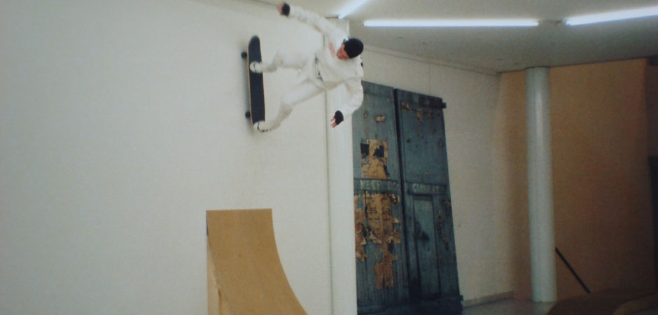 Ja klar, es gab in dem Museum festangestellte Restauratoren, die sich nur um die Arbeiten der anderen Künstler gekümmert haben. Das unsere Arbeit dem widersprochen hat, war ja klar. Im Grunde genommen war unsere Arbeit grob fahrlässig. Da hat aber auch einfach die Autorität von Mark als Skater gebürgt. Der Museumsdirektor hat gefragt: „Kann der das?“ und ich meinte, obwohl ich nicht wusste ob das stimmt: „Ja klar, der ist zweifacher Weltmeister“. Als der Museumsdirektor hörte „Weltmeister“, war für den alles klar. Wenn Leute kamen, die skeptisch waren, wurde gesagt: „Nein, nein, der ist Weltmeister“. Dieser Weltmeister hatte so eine Autorität, so ist der Mark da halt angesehen worden. Zum Glück ist nichts passiert. Das hätte wahrscheinlich einen riesen Ärger mit der Versicherung gegeben. Da hingen viele sehr wertvolle Bilder. Wir hatten aber mit dem Direktor großes Glück. Es gibt ja auch ein Foto, wie der Mark die Treppen runterspringt und der Museumsdirektor filmt. Er hat gut gefilmt, der war begeistert davon und diese Begeisterung war einfach die Voraussetzung, dass wir das überhaupt realisieren konnten.