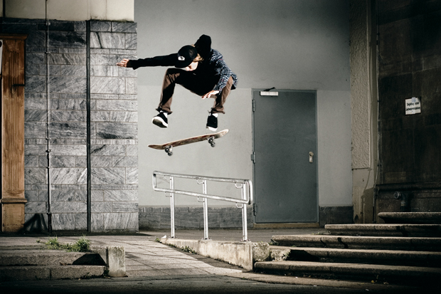Hier bekommt ihr einen exklusiven Vorgeschmack darauf, welchen Trick Daniel Espinoza hier in die Baustellenbank zu Berlin zimmert, denn in gedruckter Form benötigt ihr auch hier wieder die Monster und die Limited – Backside 180 to Fakie Crooked Grind | Seq: Hendrik Herzmann