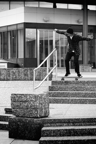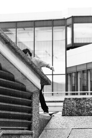 Die Reithalle in Ulm glänzte in erster Linie mit der Tatsache, dass das örtliche Rampen-Set-Up seit zehn Jahren dasselbe und dementsprechend eigen ist, was Vincent jedoch keineswegs davon abhielt, die betagten Obstacles wie ein eingeborener Local zu zerlegen. (…) In der roughen, transitionlastigen Halle war Tershy komplett in seinem Element und konnte seine Fähigkeit, unmögliche Transfers zu fl iegen, voll zur Entfaltung bringen. Für den Nachhauseweg gab‘s für die Zuschauer schließlich noch einen eiskalten Alley-Oop Backside 180, professionell in den Wallride gezimmert, mit besten Empfehlungen von Tershy Airlines.