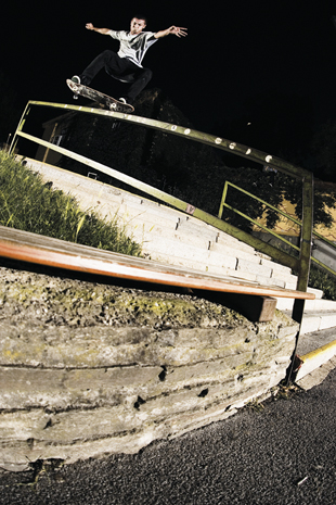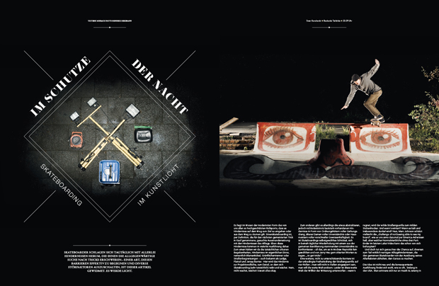Die Idee ist nicht neu und die konsequenteste Ausführung findet sich wohl, wie so oft, bislang in den USA. Man erinnere sich nur an Heath & Jeremy in „The End“ (Birdhouse). Schon hier war die Nacht der stärkste Verbündete, allerdings wären die Widerstände gegen das (im wahrsten Sinne des Wortes) Feuerwerk, dass Kirchart & Klein hier abbrennen, deutlich größer gewesen, als sie für „nur Skateboarding“ je waren – brennende Hotelflure und geplättete Riesenbüsche inklusive. (…) Und so rückt man dort schon seit Jahren, ausgerüstet mit Lampen und Generator, am Bust-Spot an, wenn der Schichtwechsel grade im Gange, der Hausmeister längst zu Hause bei seiner schlechtgelaunten Ehefrau und die Knötter-Oma längst in den Tiefschlaf gesunken ist. Und voilá; durch das Ausschalten der einen Barriere, die einem als Skateboarder die Nacht vorenthält (der Dunkelheit eben), haben sich einfach so auch eine Menge anderer Störfaktoren in Luft aufgelöst. (…)