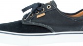 Schon der erste Eindruck des Chima Pros überzeugt: Er ist leichter als viele der klassischen Vans Modelle, was sich gerade am Fuß bemerkbar macht. Der Vorderbereich ist zwar etwas breiter, aber doch so flach geschnitten, dass der Schuh sicher sitzt und sich bequem anfühlt. Die Ferse ist dagegen etwas weiter und der Chima Pro sitzt etwas lose am Fuß. Der Fersenhalt ist leider nur durchschnittlich, trotz Wildlederfutter. Auch das übrige Innenmaterial kann nicht restlos überzeugen: Die grobe Struktur reibt leicht am Fuß. Die Fersenkonstruktion ist vulc-typisch etwas weicher und bietet weniger Stabilität. Trotzdem behält der Chima Pro seine Form und das Obermaterial dehnt sich nur sehr wenig aus, wodurch die vorhandene Stützwirkung sich auch nach längerer Tragezeit kaum verringert.