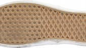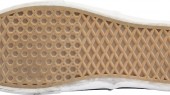 Sehr schlichte Zehenkappen aus nur einer Materiallage gehören mittlerweile zum Standard und bieten in der Regel deutlich längere Haltbarkeit als mehrteilige Designs. Vans geht beim Chima Pro allerdings noch einen Schritt weiter und verwendet eine weiche Kunststofflage zwischen dem Ober- und Innenmaterial des Vorderfußbereichs, die sie „Duracap“ nennen. Durch diese ist gerade bei den von Chima Ferguson bevorzugten Canvas-Versionen sichergestellt, dass ein aufgeriebenes Obermaterial noch kein Todesurteil für den Schuh darstellt. Insbesondere die Duracap sorgt dafür, dass sich das Obermaterial nicht wellt oder die Zehen durchdrücken, was wiederum der Haltbarkeit zugute kommt und den Schuh noch langlebiger macht. Das in der hier getesteten Farbgebung verwendete Canvas im Seitenbereich ist leider sehr schnell ausgefranst. Durch die weit nach hinten gezogene Zehenkappe werden insbesondere Ollie-Löcher im Seitenteil jedoch weitestgehend verhindert. Sowohl der seitliche- als auch der untere Teil der Sohle haben während der Testdauer von zehn Stunden einen soliden und haltbaren Eindruck gemacht. Die relativ dicke Extralage im seitlichen Vorderbereich der Sohle erhöht die Haltbarkeit merklich, und selbst im Kickflip-Bereich ist nur relativ wenig Abrieb zu beobachten. Eine der Stärken der unteren Sohle ist die Tiefe des Profils. Selbst mit neuem Griptape waren nach dem Test keine komplett abgetragenen Stellen vorhanden, wodurch eine gleichbleibend hohe Griffigkeit gewährleistet ist.