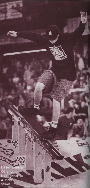 So lange es ihn gab, durfte einmal im Jahr ein großer Mastership Artikel in der Monster natürlich nicht fehlen, immerhin ging es dort stets heiß her. Egal ob eine Halfpipe einbrach, Parkplätze in Flammen gesteckt wurden oder der Artikel im Diktiergerät Style ausfiel, die Berichterstattung aus Münster (bzw. Dortmund) war nie langweilig. Bei durchsicht aller Mastership Artikel ließen sich allerdings einige Konstanten erkennen. Etwa dass Ed Templeton gefühlt fast immer mit einem Bild vertreten ist. Hier eine Aufnahme aus Prä-Toy Machine Tagen von 1991, als Ed noch New Deal repräsentierte.