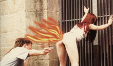 Worauf die ménage à trois, dieser irgendwie wahllos zusammengecastet wirkenden jungen Menschen mit den Wahnsinn in den Augen auf diesem Bild hinauslaufen soll bleibt wohl...