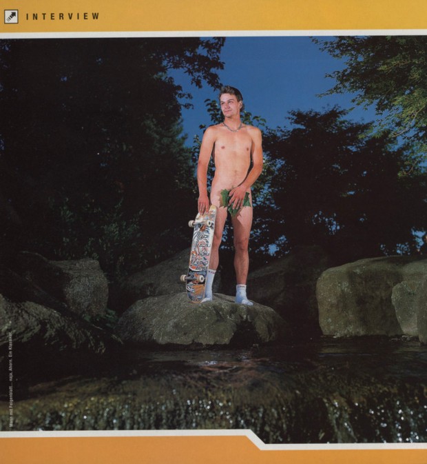 Kaum dass er dann wieder in seine Klamotten geschlüpft war, hatte er das Interview auch schon vollendet. Ohne wahrnehmbaren Outfitwechsel hat er die Tricks wahrscheinlich alle an einem Tag in gelbem Adio Pulli und baggy Jeans gemacht und Helge hat draufgehalten (wobei sein zweites Hasselblad Photo ever entstand – zu sehen in Ausgabe #300).