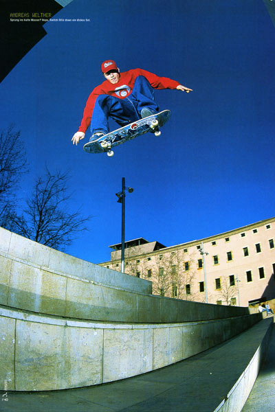 Yepp, so ist es, zwei Cover in wenigen Monaten und jetzt, mit der neuen Ausgabe, 14 Seiten reinster Welther-Wahnsinn… Es ist offensichtlich, we love Andi! Und weil dem schliesslich auch schon länger so ist, starten wir ab heute in die Welther Woche und wagen täglich auf skateboardMSM.de einen Blick in unsere gemeinsame Vergangenheit und zurück auf die Coverage, die Andi in unserem Magazin über die Jahre gesammelt hat – natürlich begleitet durch Quotes des einzig wahren.