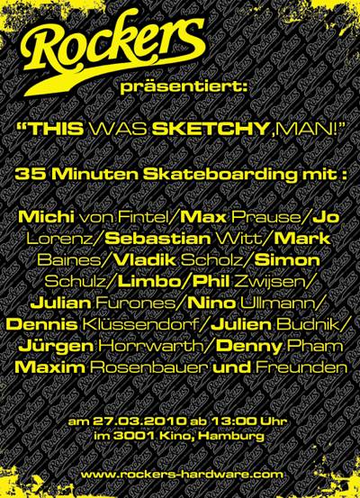 Am Samstag, den 27.03. findet in Hamburg im Kino 3001 die Premiere des Rockers Videos ‘This was sketchy man’ statt, u.a. mit Parts von Michi von Fintel, Dennis Klüssendorf, Jürgen Horrwarth, Maxim Rosenbauer und Denny Pham statt. Los geht es um 13.00 Uhr und so viel darf schon mal vorweg genommen werden: Es lohnt sich!