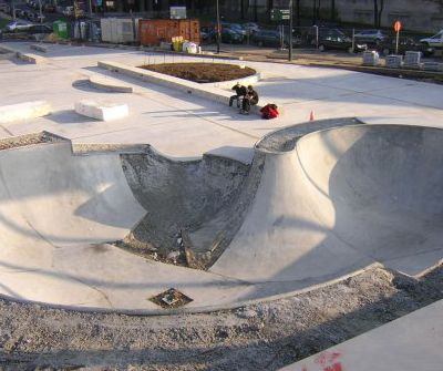 Derweil wird am kommenden Samstag, 10. Mai, im neuen Skatepark von Brüssel (Photo, das Ding ist natürlich mittlerweile fertig gebaut) die „Fiesta de Ursulines“ zelebriert. Auch hier lassen die Bilder am besten erahnen, dass sich hier das ein oder andere Stündchen mit dem Rollbrett zubringen lässt. Der Park befindet sich in der Rue de la Chapelle / Kapellestraat, am Square des Ursulines. Den Spot kennt jeder Brüsseler, ist also nicht schwer zu finden.