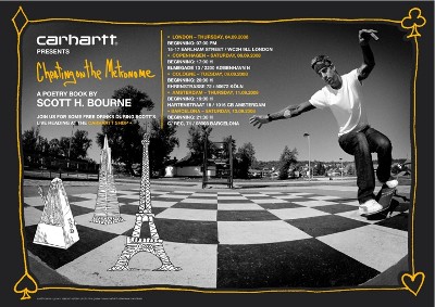 Scott Bourne hat unterdessen mit Hilfe von Carhartt ein poetisches Buch fertig gestellt, aus dem er in ganz Europa vorlesen wird. Der Deutschlandstop ist am Dienstag, den 09.09 in Köln geplant.