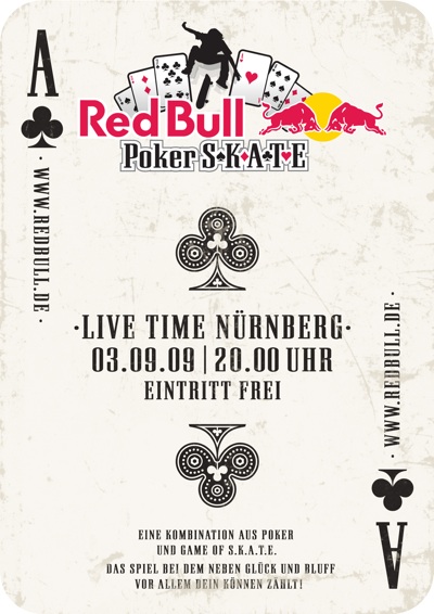 Grosse Sonnenbrillen, Casinos, heisse Damen und Millionengewinne – Das ist Poker. Die spontanen Assoziationen zu Game of S.k.a.t.e sind andere: Tech Tricks, Parkplatzsessions und durchgeschwitzte Shirts, weit ab von Cash und Casino Glamour. Beim Red Bull Poker Skate haben ab dem 3. September sechs Fahrer bei jedem der Stopps in Nürnberg, Stuttgart und Münster die Chance, beides zu vereinen. Hier stellt sich dann die Frage, ob Tobi Fleischer, Sascha Ewest, Stefan Brunner und Co. neben ihren Skateskills auch die passende Zockermentalität und ein glückliches Händchen haben, um den Jackpot von 600 Euro zu gewinnen. Switch Hardflip und Ghettobird oder doch lieber zwei solide Switch FS Heelflips? Die Entscheidung ist jedem selbst überlassen.