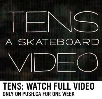 Was bitte kann es schöneres geben, als bei diesem Dreckswetter ein komplettes Video mit mehr als einer halben Stunde Länge, einfach mal so auf den Bildschirm zu bekommen. Genau das passiert jetzt mit TENS – A Skateboard Video. Die Idee dahinter ist es, von jedem Fahrer 10 Tricks zu zeigen und da sind einige grosse Namen dabei, wie ihr unschwer in der Überschrift lesen könnt. Also viel Spass beim Anschauen auf Push.ca. Aber Vorsicht: Zu sehen gibt es den Streifen nur für eine Woche!