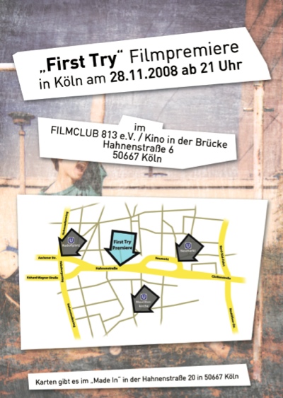 Am Freitag, den 28.11. findet in Köln im Filmclub 813 eV die Video Premiere von First Try statt. Karten kann man sich vorweg im Made In besorgen. Den Trailer zum Film könnt ihr euch hier ansehen. Dort findet ihr auch alle Hintergrundinformationen zum Film und über das Team.