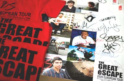 Wir verlosen drei ‘Great Escape Tour’-Tshirts und 6 vom kompletten és Team handsignierte Tourposter. Gewinnen tun die 6 ersten unter euch, die uns alle Stops der Tour in Deutschland, sowie alle Namen der Jungs, die unterschrieben haben nennen können!