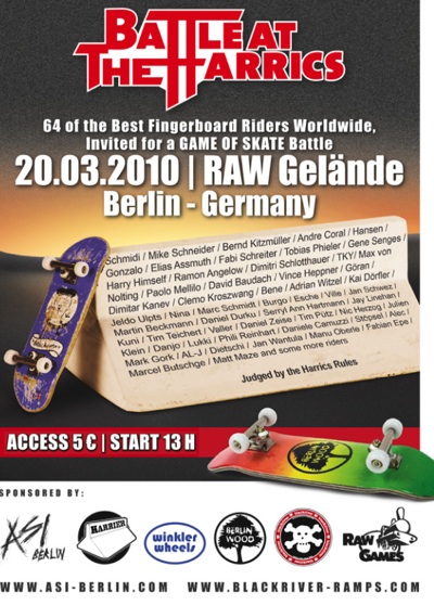 laden 64 der weltbesten Fingerboarder zum “Battle at the Harrics” am 20. März nach Berlin.
