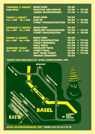 Falls einige von euch verwirrt sind, dieser Contest heisst offiziell “European Skateboard Championship” ,kurz ESC, und wer fleissig unsere Seite besucht wird bemerkt haben, dass ihr Karten gewinnen könnt.
