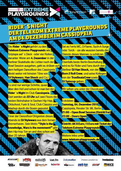 Rider’s Night der Telekom Extreme Playgrounds ab 22 Uhr im Cassiopeia,