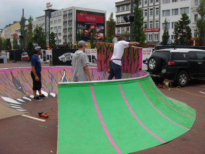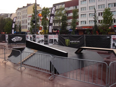 Unser Spion vor Ort in Hamburg hat uns exklusiv die ersten Photos vom Aufbau des Vans Downtown Showdown Parcour zukommen lassen.