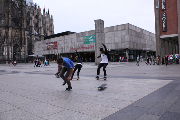 Vor der Filmvorführung wurde sich am Dom getroffen um dort eine entspannte Session zu fahren, bevor es dann ins Museum Ludwig ging, um „Rollen Aaller 3″ auf der großen Leinwand zu bestaunen. Definitiv ein sehenswerter Streifen und wer die Möglichkeit hat, sollte sich einen Blick darauf nicht entgehen lassen. Ein paar Termine stehen noch an.