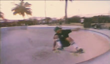 Screaming Lord Salba stellt seine eigene Deck Serie „Salba Cruz” vor und heizt zu selbstgemachter Punk Mucke gnadenlos durch harte Pool Trannies.