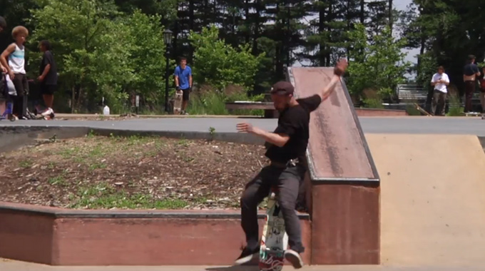 Brendon Villanueva macht krasse Dinge. Frontside 50-50 to Frontside Boardslide am runden Handrail zum Beispiel. Der junge Mann hat Zukunft.