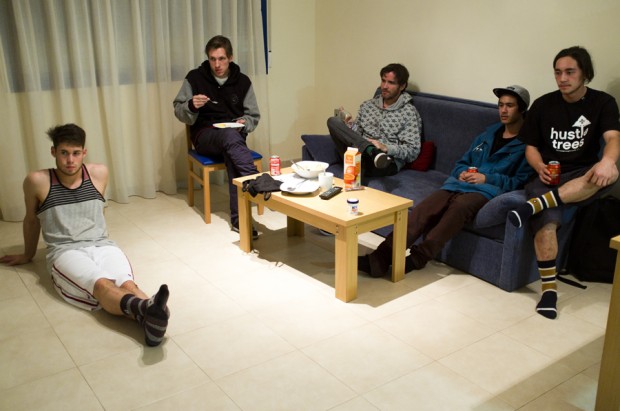 Auch wenn Ben Dillinger sich am Ende des letzten Tourblogs erst den Fuß verstaucht hat, ist er hier schon wieder einer der drei Weisen, die das nächste Pyramiden Set begutachten. Seid mal gespannt, was da für Tricks gefallen sind.