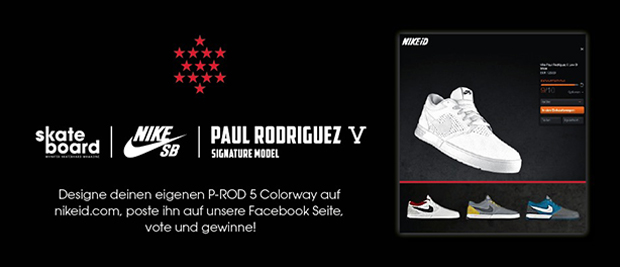 Zusammen mit Nike SB bieten wir dir die Möglichkeit, den neuen P-Rod 5 Low nach deinen Vorstellungen zu gestalten und so deinen ganz persönlichen Skateschuh zu erhalten.