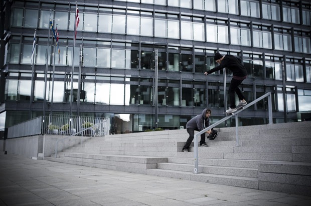 Wenn Kieler Sprotte Louis Taubert eine Tour organisiert, dann liegt es nahe, mit den Spots seiner Heimatstadt zu starten und sich von dort aus weiter in den Norden hochzukämpfen. Mit Kopenhagen als Zielort machte sich die von ihm versammelte, sehr illustre Truppe von Freunden auf, dem Mischwetter der nördlichen Hemisphäre zu trotzen – mit mit entsprechendem Mischerfolg. Zur Rettung kam niemand geringeres als Polar Begründer Pontus Alv, der die Mannen um seinen neuesten Teamfahrer Tjark Thielker in seine Heimat Malmö einlud. Auf, gen Norden!