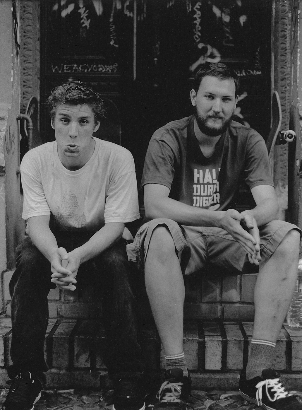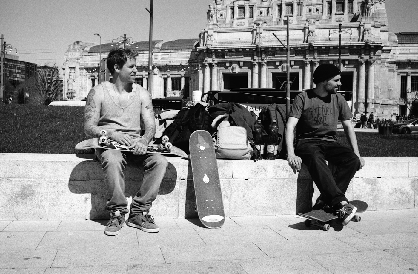 Chris: Ich bin Chris Heck. Ich denke dem ein- oder anderen könnte mein Name noch aus den 90ern ein Begriff sein. Ach nee – das ist ja schon ein halbes Leben her. Nils ist einer meiner besten Kumpels. Wir haben zwar den gleichen Nachnamen, sind aber nicht verwandt. Kennengelernt haben wir uns, als ich fürs Alibistudium nach Dieburg in Südhessen gezogen bin und nach Leuten gesucht habe, die dort skaten. Da ist mir plötzlich ein zerlumpter Dude auf einem Fahrrad entgegengekommen, der ein Skateboard am Rucksack hatte und ein bisschen gejammert hat, weil ihm der Arsch weh tat. Das war Nils. Ich hab ihm dann ne DVD meiner damaligen Skatecrew gegeben und er hat nicht schlecht gestaunt, als mein Part kam und er meinen Nachnamen gesehen hat..
