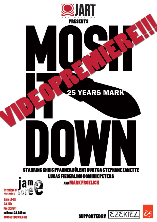 Wieder sind seine Homies wie Chris Pfanner, Bülent Kurtca, Lucas Fiederling und noch viele mehr mit am Start und wieder wird er einen epischen Part abliefern, soviel ist sicher. Premiere hat das Video Namens „Mosh it Down“ am 14. März im Jamboree Club in Barcelona. Alle die mehr über Mark, das Video und seinen Part erfahren möchten sollten sich die nächste Ausgabe des Monster kaufen, dort wird er in einem ausführlichen Interview Rede und Antwort stehen.