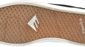 Vor allem die Sohle sorgt beim ersten Tragen für einen Aha-Effekt. Durch die Sohlenkonstruktion entsteht ein angenehm abfederndes Gefühl. Der Vorderbereich ist zwar etwas breiter, aber doch so flach geschnitten, dass der Schuh sicher sitzt und sich bequem anfühlt. Die Zunge ist durch Gummistreifen fixiert. Diese sind sehr kurz, wodurch sich die Zunge und die Gummistreifen regelrecht um den Fuß schlingen und ihn fixieren. Der Komfort um die Ferse ist leider nur durchschnittlich, weil der Bereich etwas weiter geschnitten ist. Dadurch sitzt der Romero Laced etwas lose am Fuß. Die Fersenkonstruktion ist weich und bietet relativ wenig Stabilität. Sie ist zum einen sehr weit geschnitten und zum anderen hat der Rand keine Schaumstoffeinlage, die für eine bessere Stabilität sorgen könnte. Trotzdem behält der Emerica Romero Laced insgesamt seine Form und das Obermaterial dehnt sich nur sehr wenig aus. Somit verändert sich die vorhandene Stützwirkung auch nach längerer Tragezeit kaum.