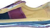 Die Dämpfung des HUF Dylan ist mittelmäßig. Der Querschnitt zeigt deutlich, dass eine typische Sohlenkonstruktion mit dem innovativen Skateschuhdesign verbunden wurde. Die Sohle hat eine Sprengung zwischen Vorderfuß- und Fersenbereich. Das sorgt zum einen für einen guten Sitz und zum anderen zum Schutz der Ferse. Jedoch ist die Sohle insgesamt so dünn, dass die Dämpfung eingeschränkt ist. Damit trotzdem der Fuß geschützt wird, hat der Dylan eine dicke Schaumstoffeinlegesohle. Diese hat ebenso eine Sprengung. Sie ist vorne dünn und wird zur Ferse hin dicker. Diese Innensohle hat zwar einen Dämpfungseffekt, jedoch kann sie Stöße auch nur zu einem begrenzten Maß abfedern.