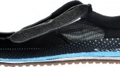 Der Rowley Pro Lite besteht aus zwei Teilen. Der erste Teil ist der Vorderfußbereich, der sich bis zur Mitte des Schuhs zieht. Dieser Teil kommt komplett ohne Nähte aus, wodurch die Haltbarkeit erheblich gesteigert wird. Zur besseren Orientierung bei Fliptricks besitzt der Vorderfußbereich Präglinien, die auch dazu beitragen, die Designlinien des Klassikers beizubehalten. Durch den flachen Vorderbereich wird hauptsächlich das seitliche Gummi angegriffen. Dieses Stück wird dadurch vor allem im Kickflip-Bereich schnell abgetragen. Der hintere Teil des Rowley Pro Lite besteht komplett aus Meshmaterial. Dadurch wird einerseits Gewicht reduziert und andererseits die Luftdurchlässigkeit deutlich verbessert. Leider ist dieses Material relativ empfindlich. Sobald das Material in Kontakt mit dem Griptape kommt, franst es sehr schnell aus und ist, wie zu sehen, anfällig für Löcher. Die Sohle ist bezüglich der Haltbarkeit eine Stärke des Rowley Pro Lite. Das tiefe Profil trägt sich kaum ab und dadurch ist eine gleichbleibend hohe Griffigkeit gewährleistet.