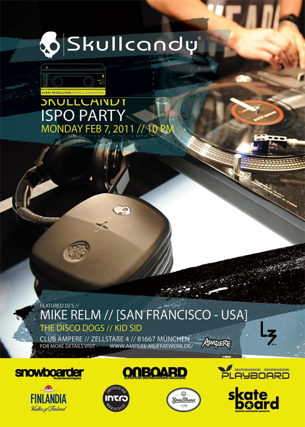 Für all diejenigen, die die Bright gut überstanden haben und entweder schon in München auf der ISPO sind oder auf dem Weg dorthin, haben wir auch noch einen Ausgehtipp für den Montag Abend. Ab 22:00 Uhr bittet SKULLCANDY im Ampere Club auf dem Muffatgelände zum Tanz.