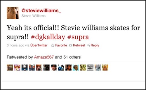 Es hat sehr lange gedauert, bis Stevie Williams nach seinem Deal mit RBK einen neuen Schuhsponsor an Land gezogen hat, aber jetzt hat es geklappt. Sein neuer Brötchengeber ist Supra Footwear und Stevie macht daraus auch kein Geheimnis.