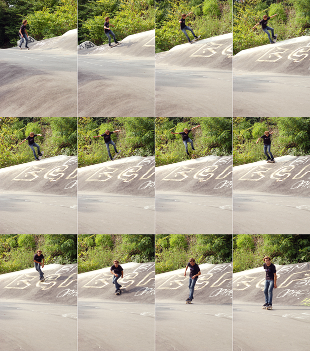 Wie das so beim Skaten so oft ist: Man sucht einen bestimmten Spot und findet einen anderen. Anna ist auf diesem Trip ungefähr 20 mal auf den Arsch gefallen, was sie aber nicht daran gehindert hat den Olle hier frühmorgens ohne warmfahren zu machen