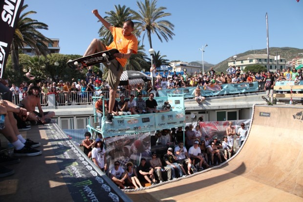Vans lud ein und alle kamen, aber wer sollte auch nein sagen? Immerhin war eine riesige Miniramp direkt am Strand des italienischen Örtchens Varazze angekündigt. Also surften bei bestem Sommerwetter Fahrer wie Ross McGouran, Ferit Batir, Josh Young und Ben Grove in der hölzernen Welle vor den Wellen. Sozusagen als Schirmherr kam sogar Jeff Grosso über den großen Teich geflogen, den wir uns bei dieser Gelegenheit für ein ausführliches Interview schnappten.
