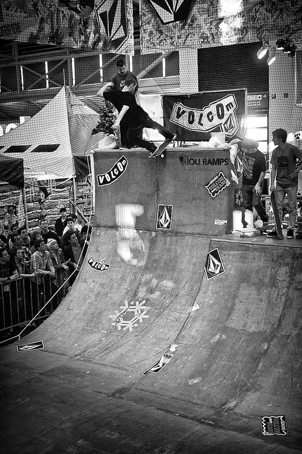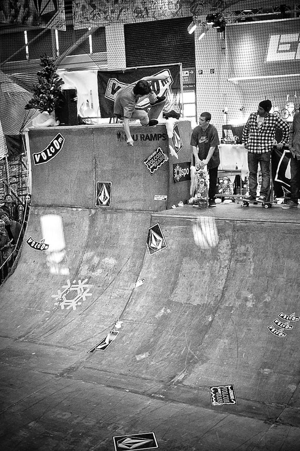 Beim Contest am zweiten Tage gewann Rune Glifberg, der riesige Airs aus der Extension machte und jeden Zentimeter Coping zerstörte.