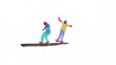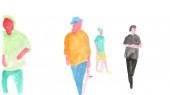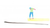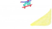 Für die Animation habe ich mir von jedem Clip eine Auswahl an Frames genommen, den Skater ausgeschnitten und in sehr geringer Deckkraft ausgedruckt. So kannte ich die Richtung und konnte loslegen. Durch die Wasserfarben bekamen die Flächen wieder Bewegung und einen reduzierten, aquarellen Charakter. Nach ein paar Versuchen gefiel es mir und ich habe mich ans Ausschneide-Druck & Mal-Fließband gesetzt!