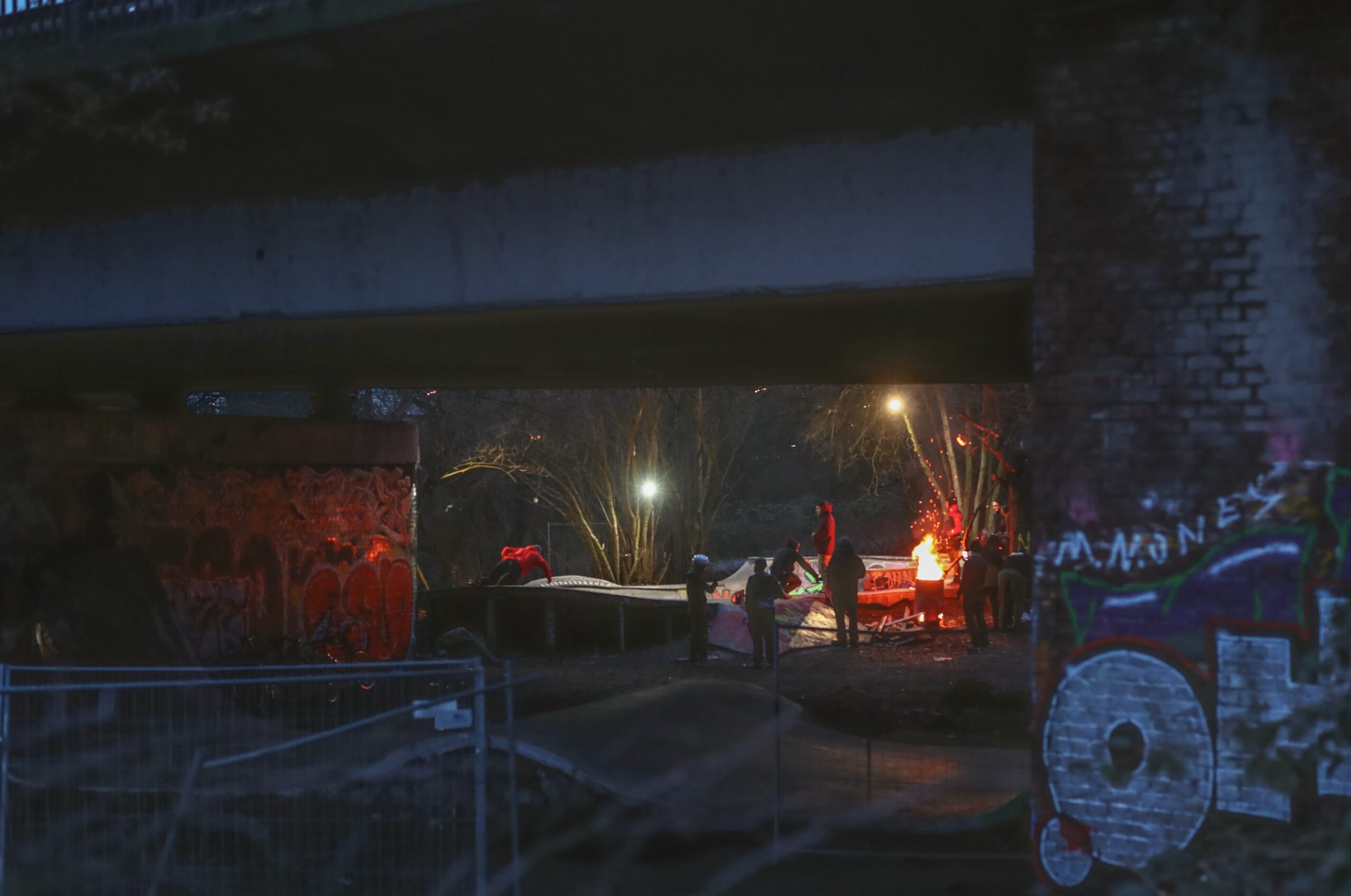 Unter einer Brücke, versteckt hinter wilden Sträuchern und Büschen, gab es einen Ort direkt neben einem Kanal. Weitestgehend geschützt vor Sonne, Regen und Schnee, entstand hier ein Raum, an dessen Entwicklung unzählige Menschen beteiligt waren und Teil dessen wurden.