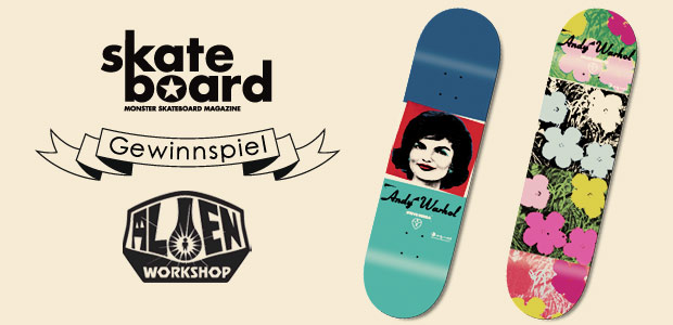 Da wir unseren Standard natürlich halten wollen, gilt es auch diesmal wieder zwei Gewinner zu finden. Zusammen mit Alien Workshop wollen wir euch nämlich zwei Bretter aus deren „Warhol“ Serie II zukommen lassen, die fast zu schön sind um darauf zu sliden. Wer ein Deck gewinnen möchte, der muss folgende Frage beantworten: