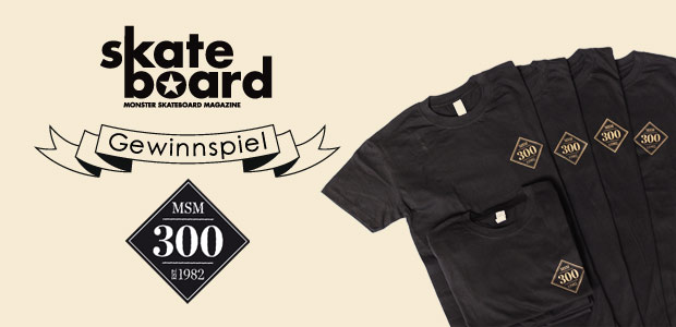 Die richtige Antwort einfach samt eurer Adresse und T-Shirt Größe unter dem Kennwort „MSM 300 T-Shirt“ bis zum 19.07 an redaktion@skateboardmsm.de schicken und schon seid ihr dabei.
